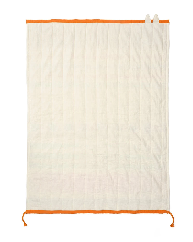 - Miękki kocyk muślinowy (170x130 cm) inspirowany siłą i dobrocią Pippi. Z bawełny organicznej z recyklingowym wypełnieniem. Jedna strona z nadrukiem, druga z cytatem. Urocze detale: warkocze i końskie uszy. Idealny do snu i jako narzuta.