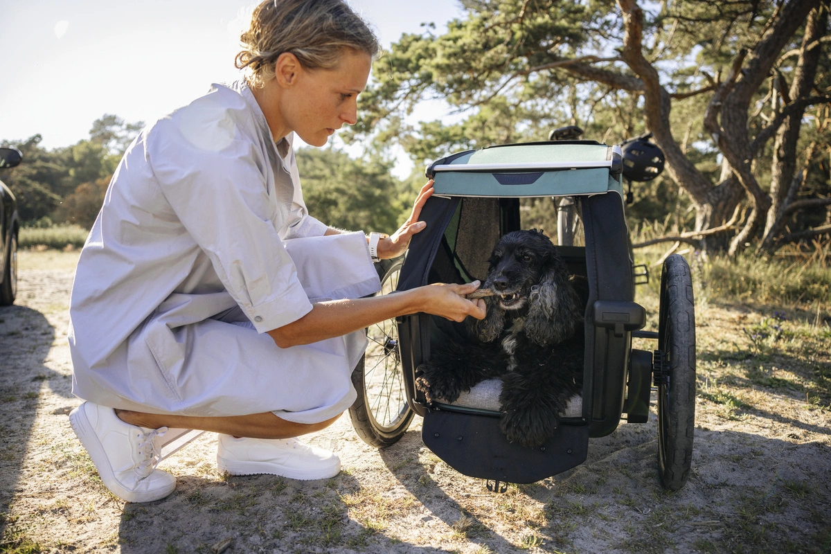 - Miękki i wygodny materac do przyczepki rowerowej dla psa Thule Bexey zapewnia zwierzakowi dodatkowy komfort.