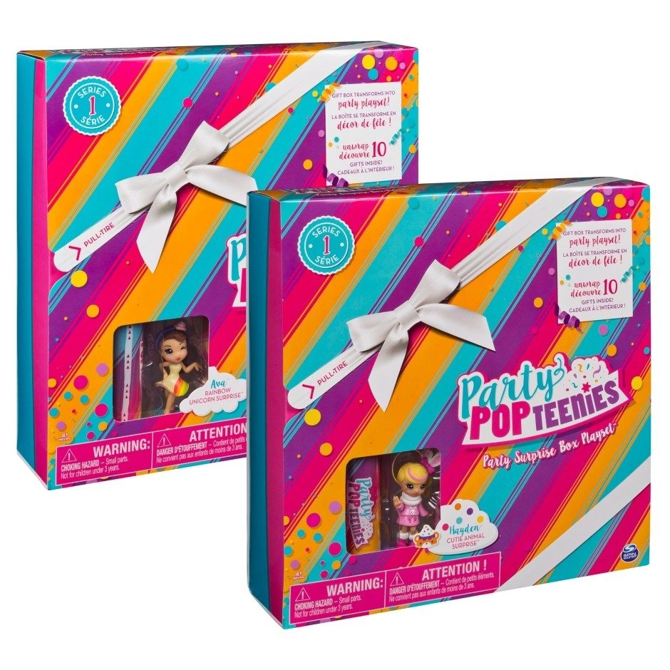 - Wyrzucony z serpentynami i balonami, Party Surprise Box to idealne miejsce na świętowanie Party Popteenies. Możesz nawet odwrócić jedną ze swoich paczek, aby stworzyć parkiet taneczny!