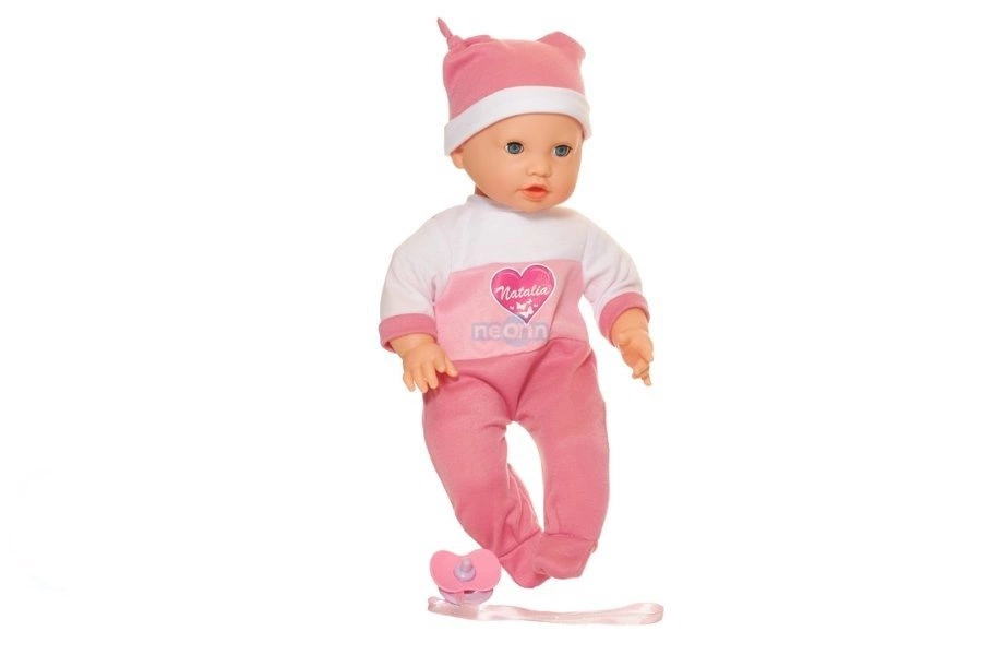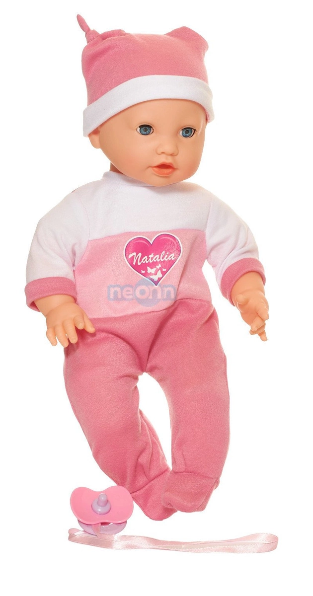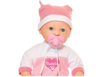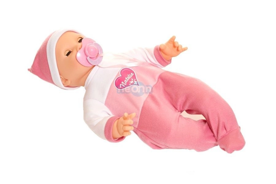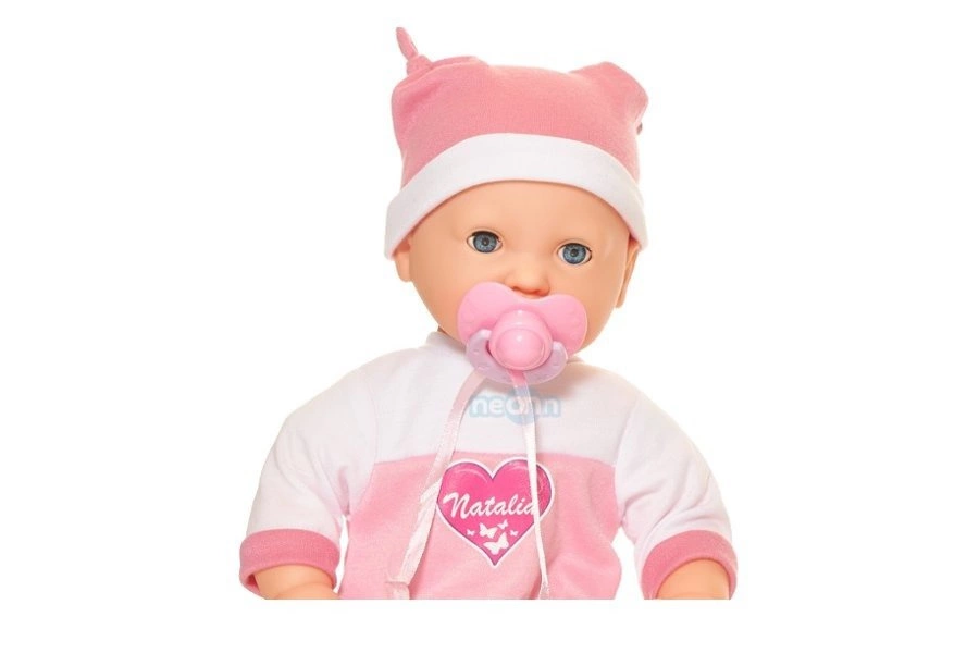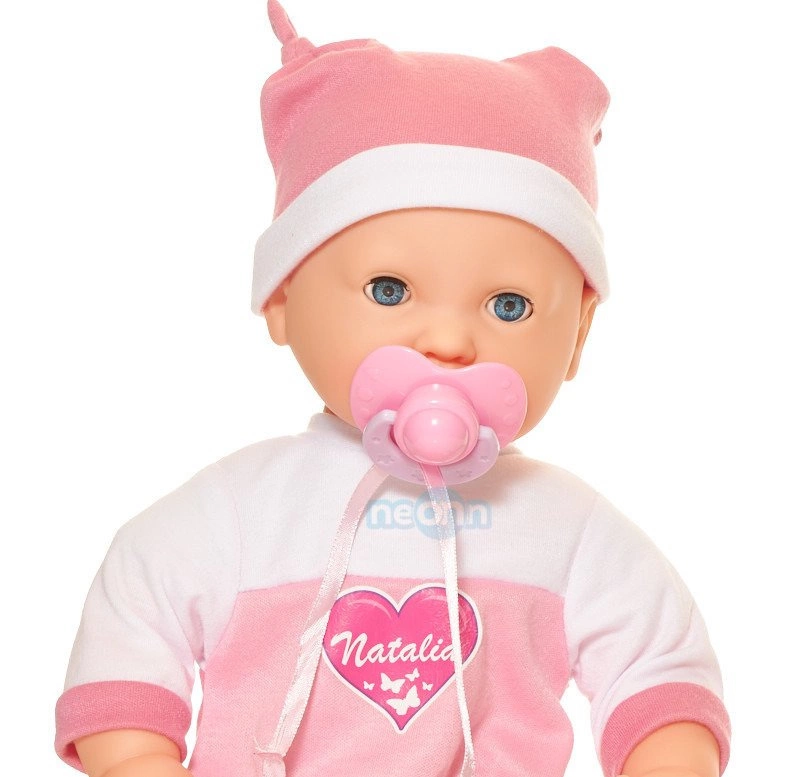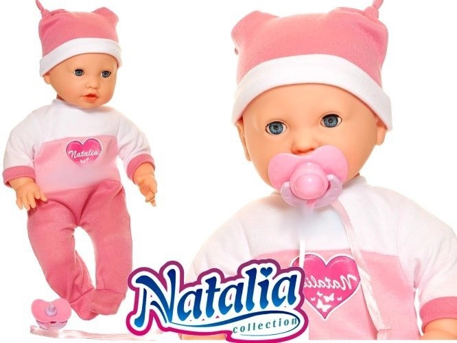 - Lalka Natalia jest śliczna i zachowuje się jak prawdziwe niemowlę. Natalia ma gumowe ręce, buzię i nóżki, oczy otwiera i zamyka w zależności od pozycji ułożenia.