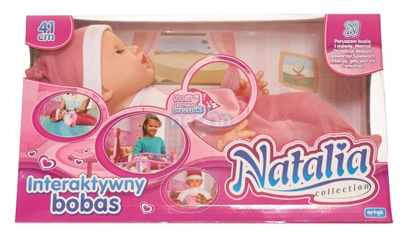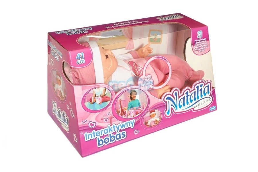 - Bobas interaktywny - Natalia - lalka która porusza buzią i zamyka oczka.