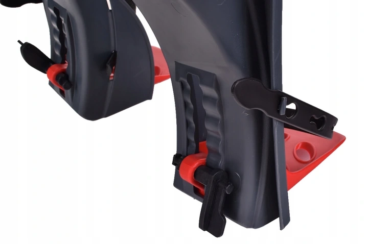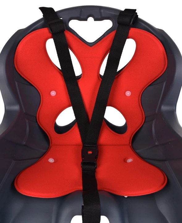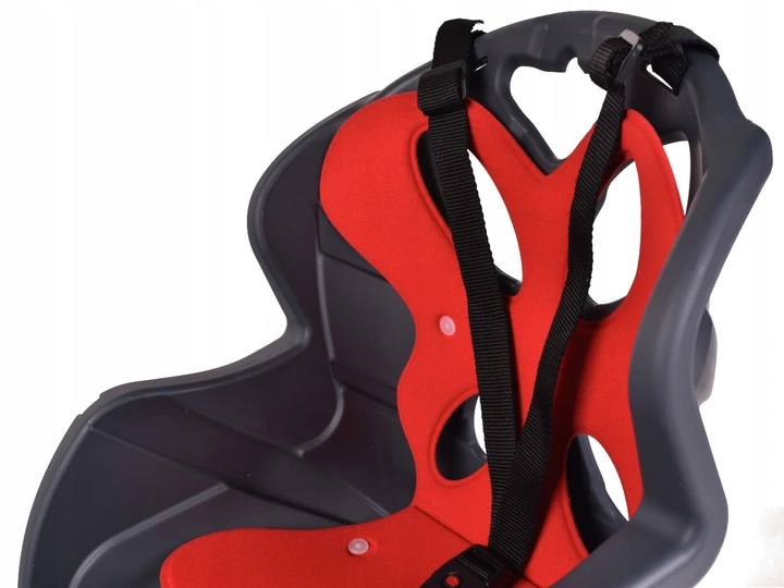 • bardzo łatwy i szybki montaż i demontaż fotelika dzięki zastosowaniu uniwersalnej szybkozłączki (montaż i demontaż zajmuje ok 2s dzięki specjalnemu zatrzaskowi) po przykręceniu mocowania do ramy montaż fotelika nie wymaga użycia żadnych kluczy