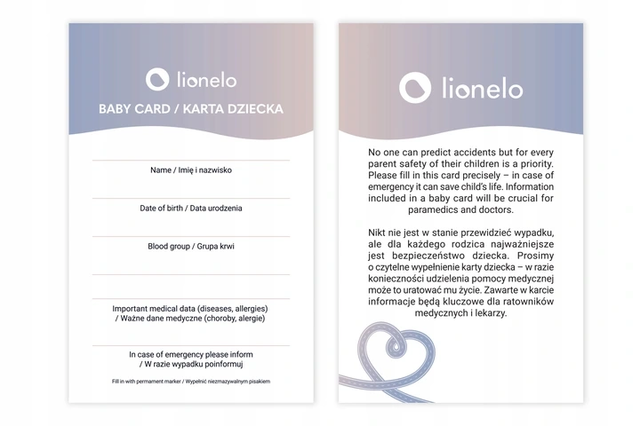 W treści powinny znajdować się tylko najważniejsze informacje, które będą użyteczne dla ratowników i lekarzy, np. alergia na określony środek przeciwbólowy czy numery kontaktowe do opiekunów. Kartę wypełnia się niezmywalnym markerem.