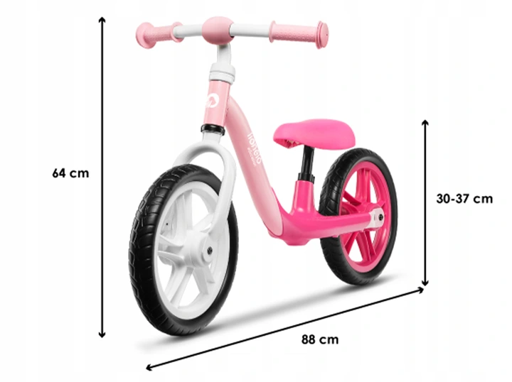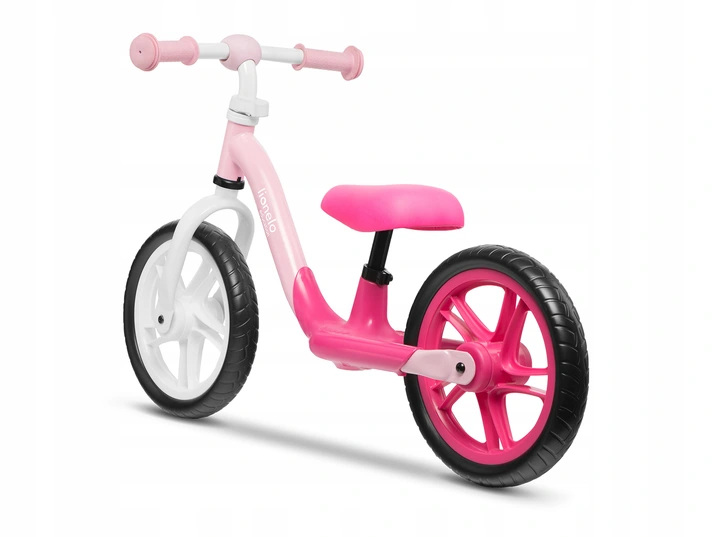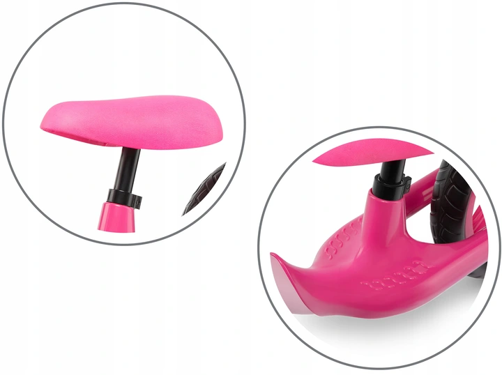 Dzięki możliwości regulacji siodełka, możemy odpowiednio je dopasować, by maluch czerpał jak najwięcej korzyści z rowerka. By poruszać się na rowerku w odpowiedni sposób, dziecko siedząc, powinno mieć nogi lekko ugięte w kolanach i jednocześnie całymi stopami dotykać podłoża. Siodełko powinno być ustawione na wysokość o około 2,5-3,5 cm niższą niż długość uda dziecka mierzona od wewnętrznej strony.