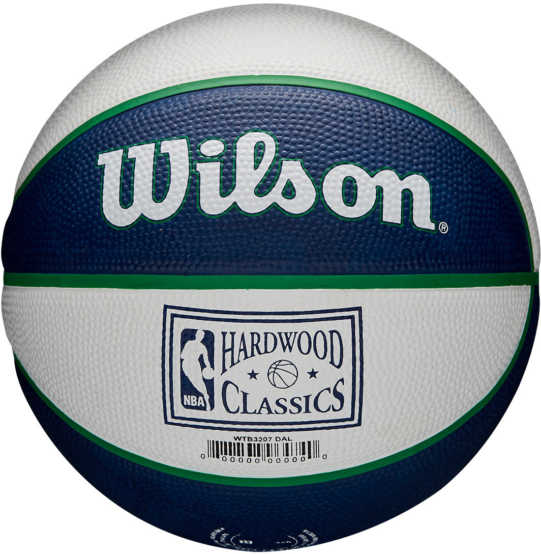 • Piłka do koszykówki Wilson Dallas Mavericks Retro Hardwood Classics mini. Polecana dla najmłodszych, początkujących koszykarzy i do rzucania do małych przenośnych, domowych koszy. Rozmiar: 3 - piłka dziecięca do ok. 8-9 roku życia.
