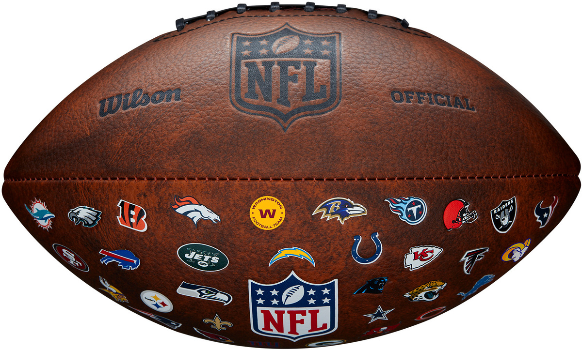 Piłka nie dla fanów drużyny, ale fanów tego sportu, na której to poza logo ligi NFL znajdziemy również logo wszystkich 32 drużyn.