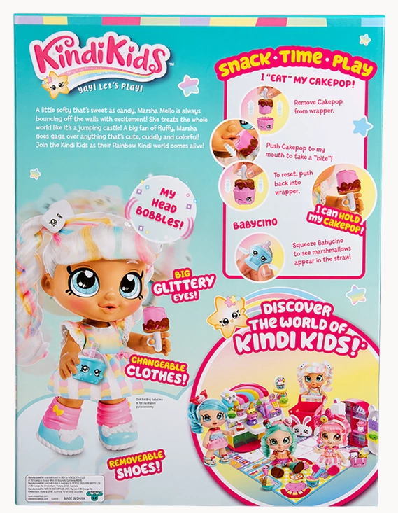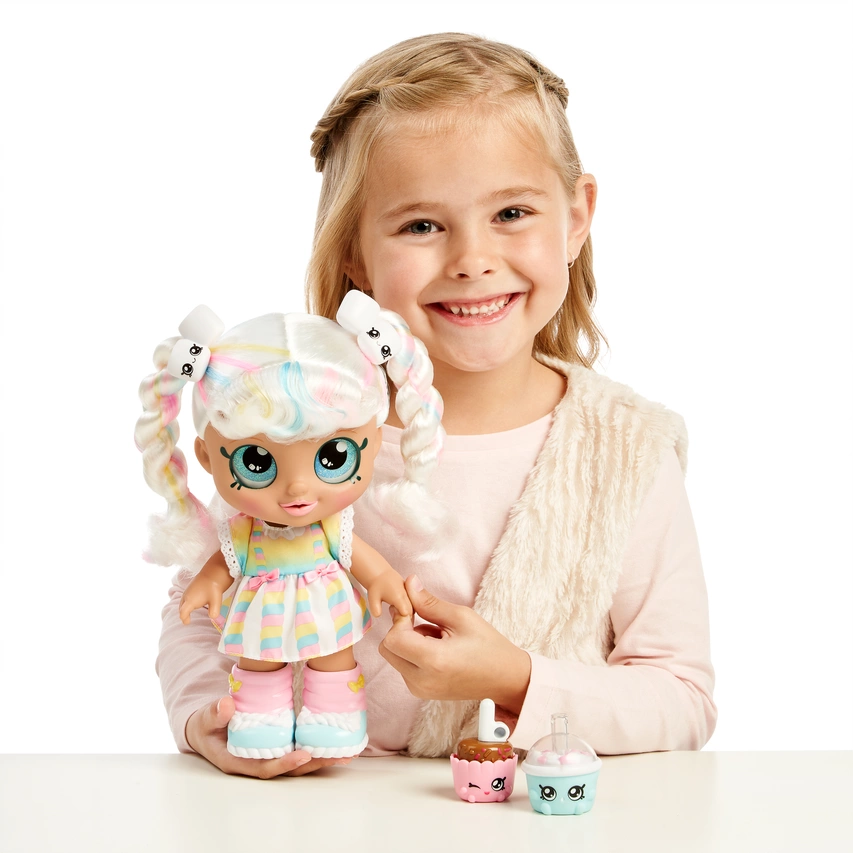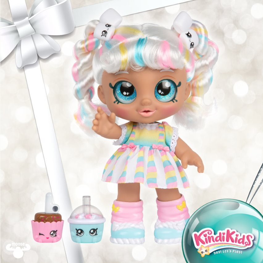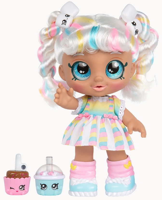Poznajcie Kindi Kids! To zachwycające lalki - o pięknych włosach w kolorach tęczy i dużych brokatowych oczach. Dzięki ruchomej głowie, każda wspólna zabawa sprawia że lalka „ożywa” nam w dłoniach. Lalki posiadają ściągane ubranka i buciki oraz ciekawe spersonalizowane akcesoria.