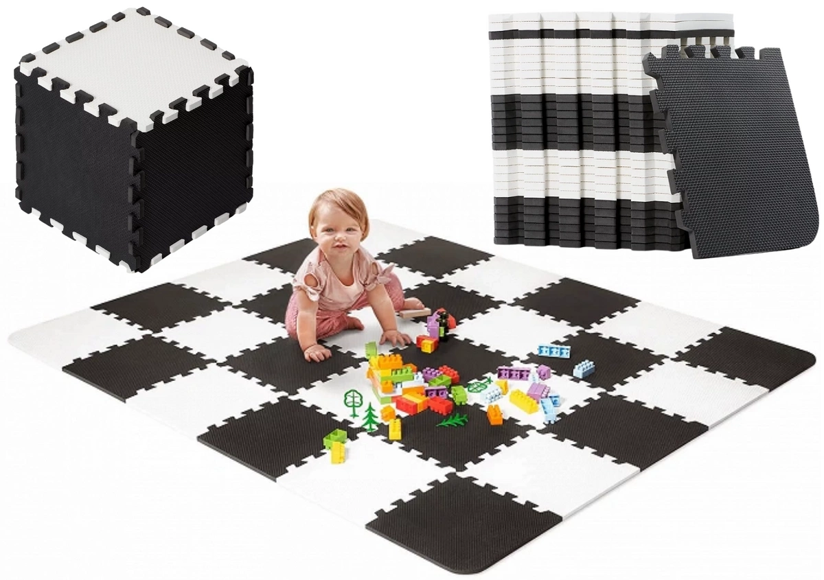 Chropowata powierzchnia puzzli doskonale chroni maluszka przed poślizgnięciem się podczas raczkowania i stawiania pierwszych kroków.