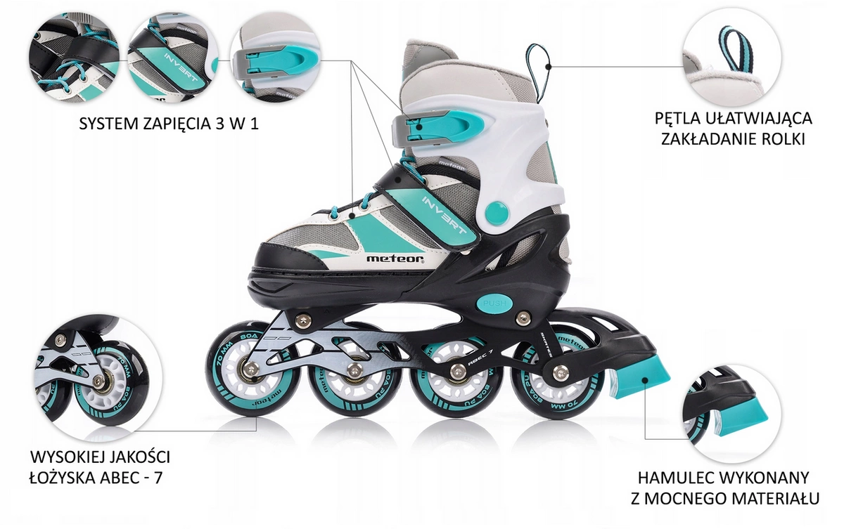 - Łyżwy, rolki, wrotki i rolko-wrotki w jednym? Poznaj Meteor - praktyczne rozwiązanie dla najbardziej wymagających małych sportowców! To najlepszy wybór, który posiada możliwość regulacji rozmiaru. Dzięki temu rolki rosną wraz z dzieckiem.