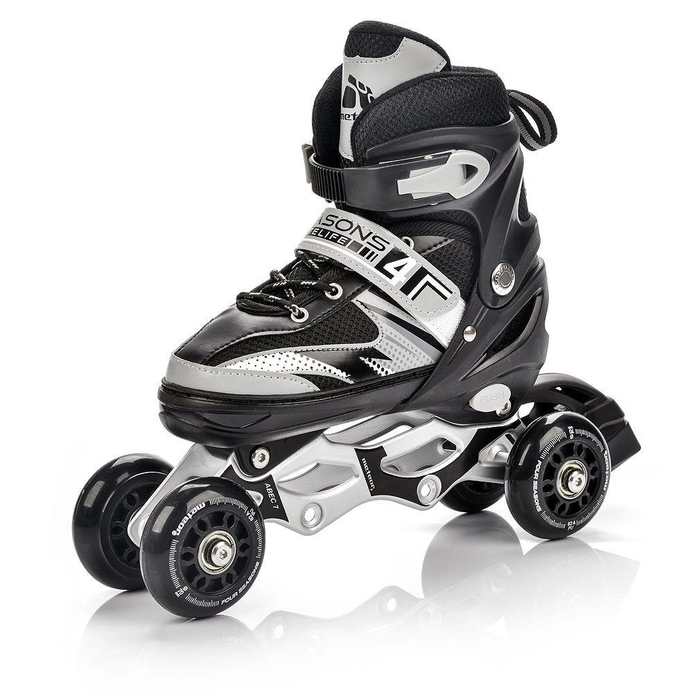 - to 4w1, czyli rolki, łyżwy, wrotki i rolki-wrotki w jednym! Posiadają wymienną płozę, dzięki której można z nich korzystać w czterech różnych konfiguracjach,