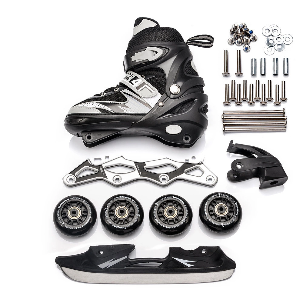 Produkt oferuje aż 4 możliwości konfiguracji - łyżwy, łyżworolki, wrotki oraz rolko-wrotki, dzięki temu, sprawdza się zarówno latem, jak i zimą.