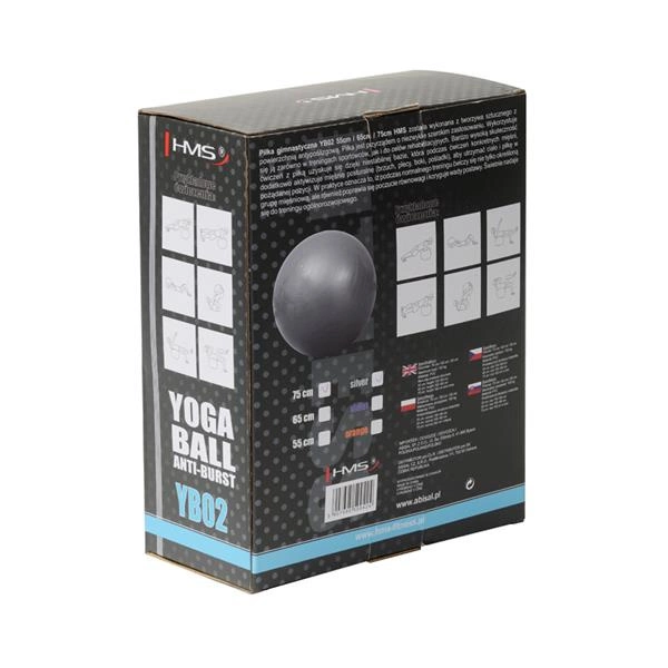 YB02 HMS ANTI-BURST to wytrzymała piłka gimnastyczna wykonana ze specjalnej gumy w technologii Anti-burst, dzięki której w razie pęknięcia, piłka stopniowo traci powietrze, chroniąc ćwiczącego przed nagłym upadkiem.