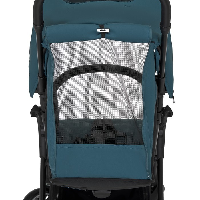 • Wózek posiada duże okno wentylacyjne dodatkowo zabezpieczone siatką. Kiedy dziecko wygodnie śpi w pozycji leżącej umożliwia ono swobodny przepływ powietrza. Funkcja ta sprawdza się przede wszystkim podczas cieplejszych dni.